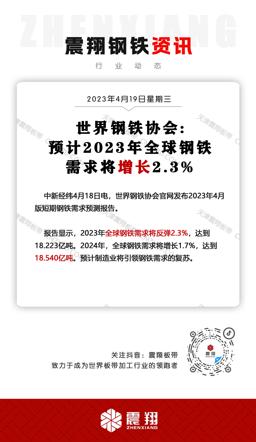 中新經(jīng)緯4月18日電,世界鋼鐵協(xié)會(huì)官網(wǎng)發(fā)布2023年4月版短期鋼鐵需求預(yù)測(cè)報(bào)告